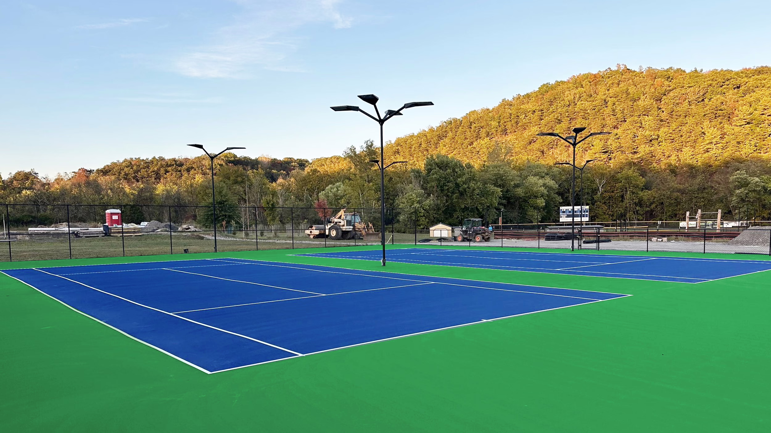 Keystone Sports Construction recently completed the renovations of the tennis courts for the Alleghany College of Maryland, located in Cumberland, MD. The college was founded in 1961 and has consistently ranked in the top 20 in the National Junior College Athletic Association. The project included resurfacing and installing a new acrylic surface coating. Afterward, tennis and blended pickleball line striping were provided for the courts, and netting and poles were installed.