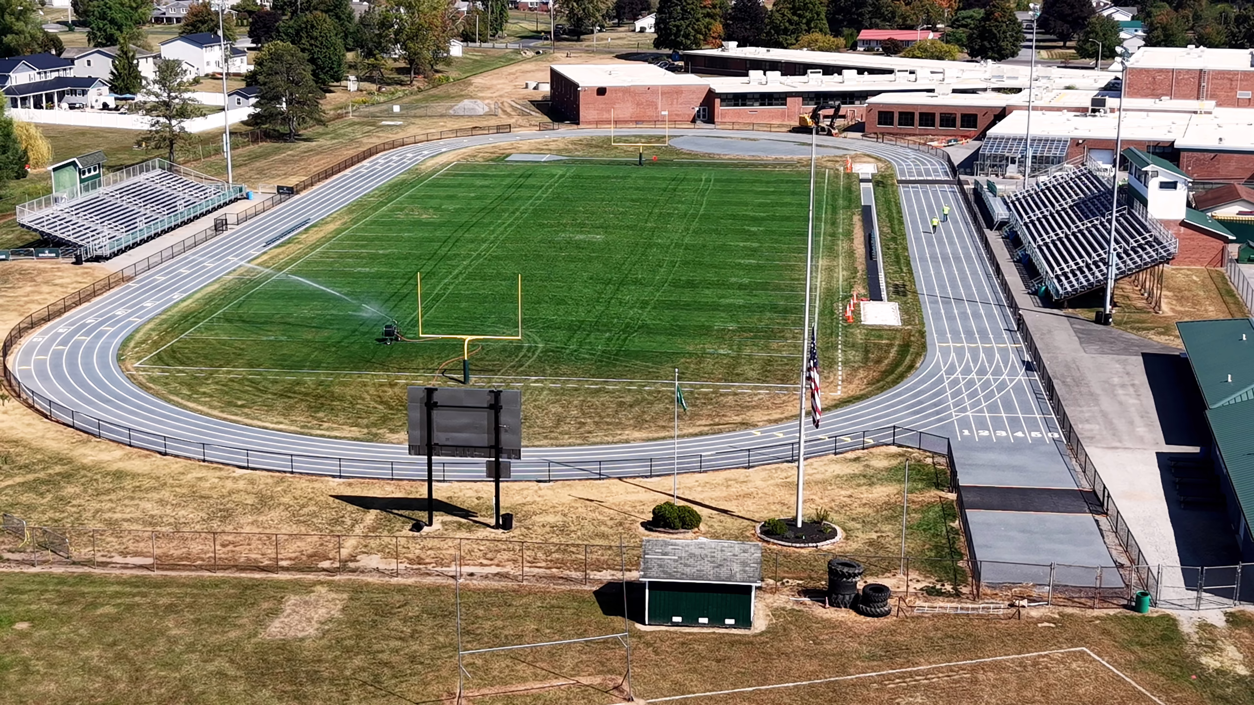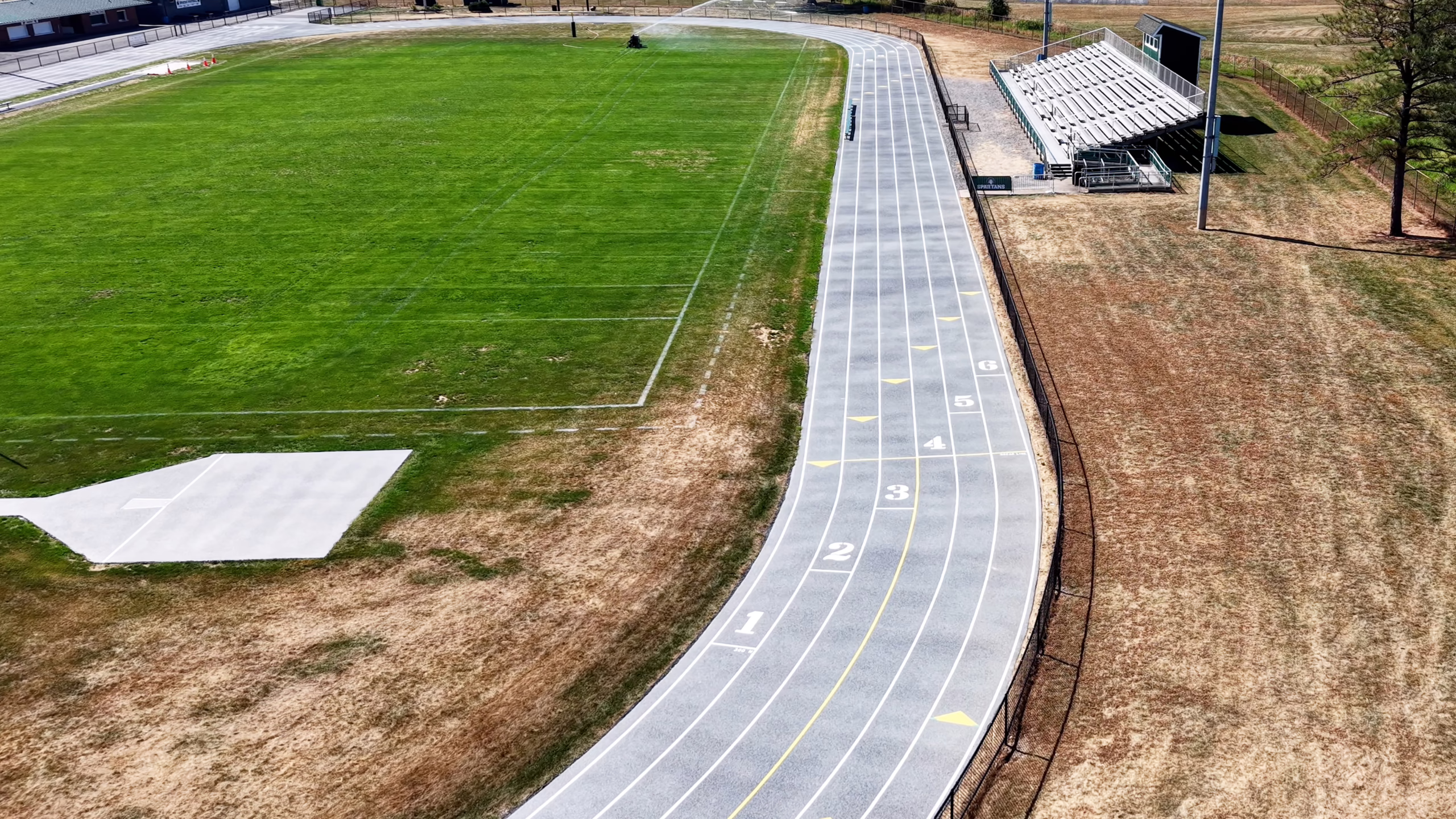 Keystone Sports Construction recently completed renovations of the running track at Hughesville High School for the East Lycoming School District in Hughesville, Pennsylvania. East Lycoming School District is a rural public school district in Lycoming County, Pennsylvania, serving approximately 1,600 students across four schools, with a strong focus on academic achievement, extracurricular activities, technical education, and community engagement. The project was initiated by removing the existing rubber from the track, long jump, high jump, and pole vault areas. A three-component sandwich-style synthetic running track surfacing was then installed in the running track and track event locations. Afterward, chain link fencing was installed around the track.