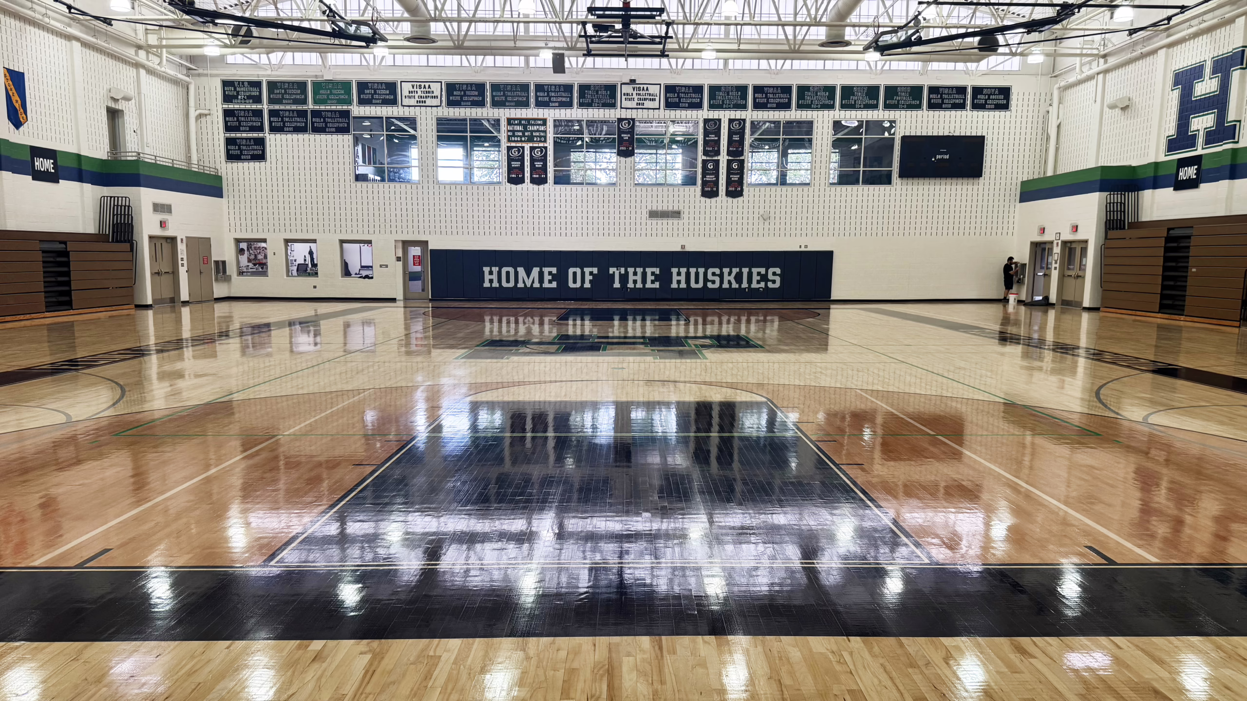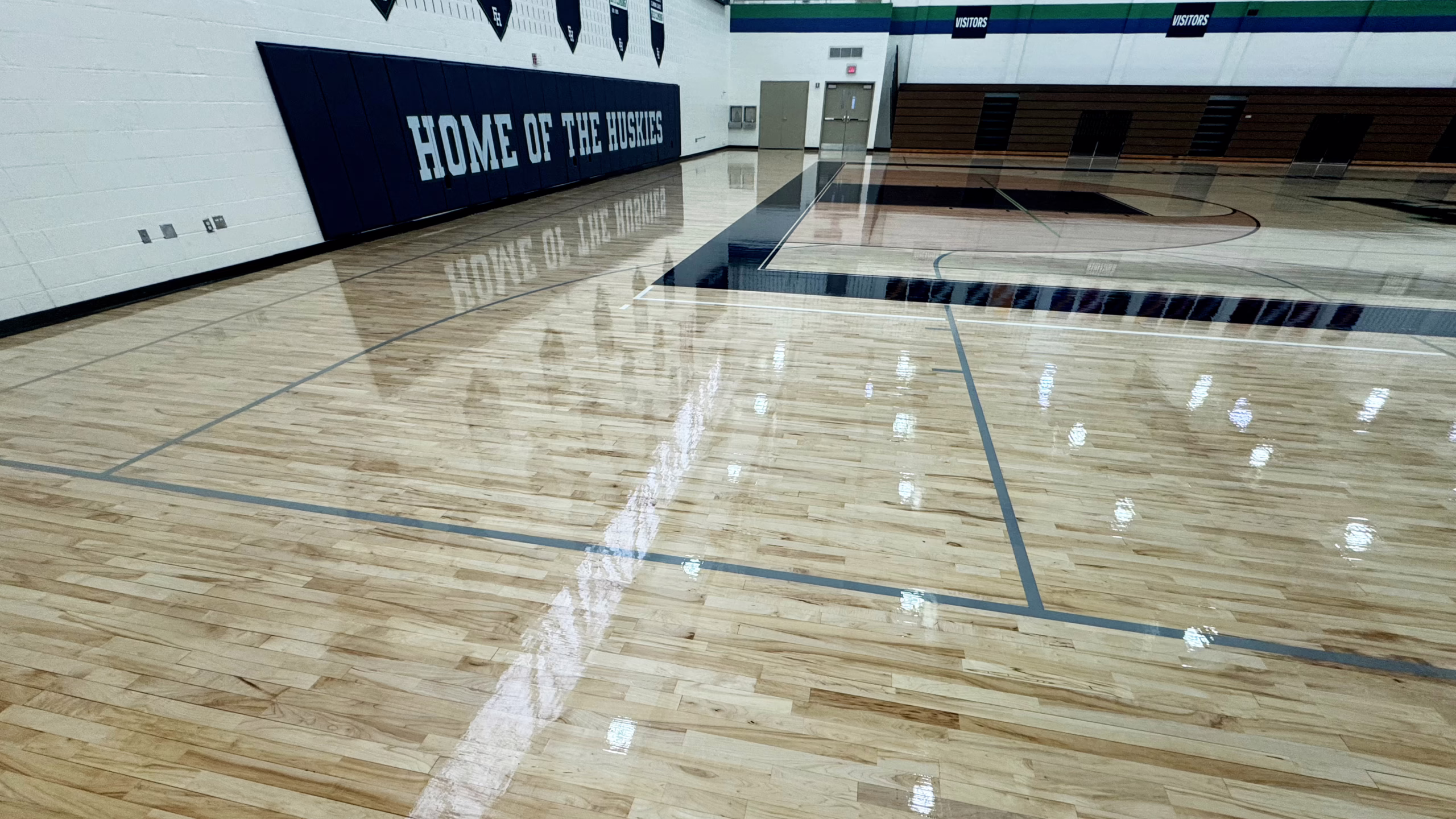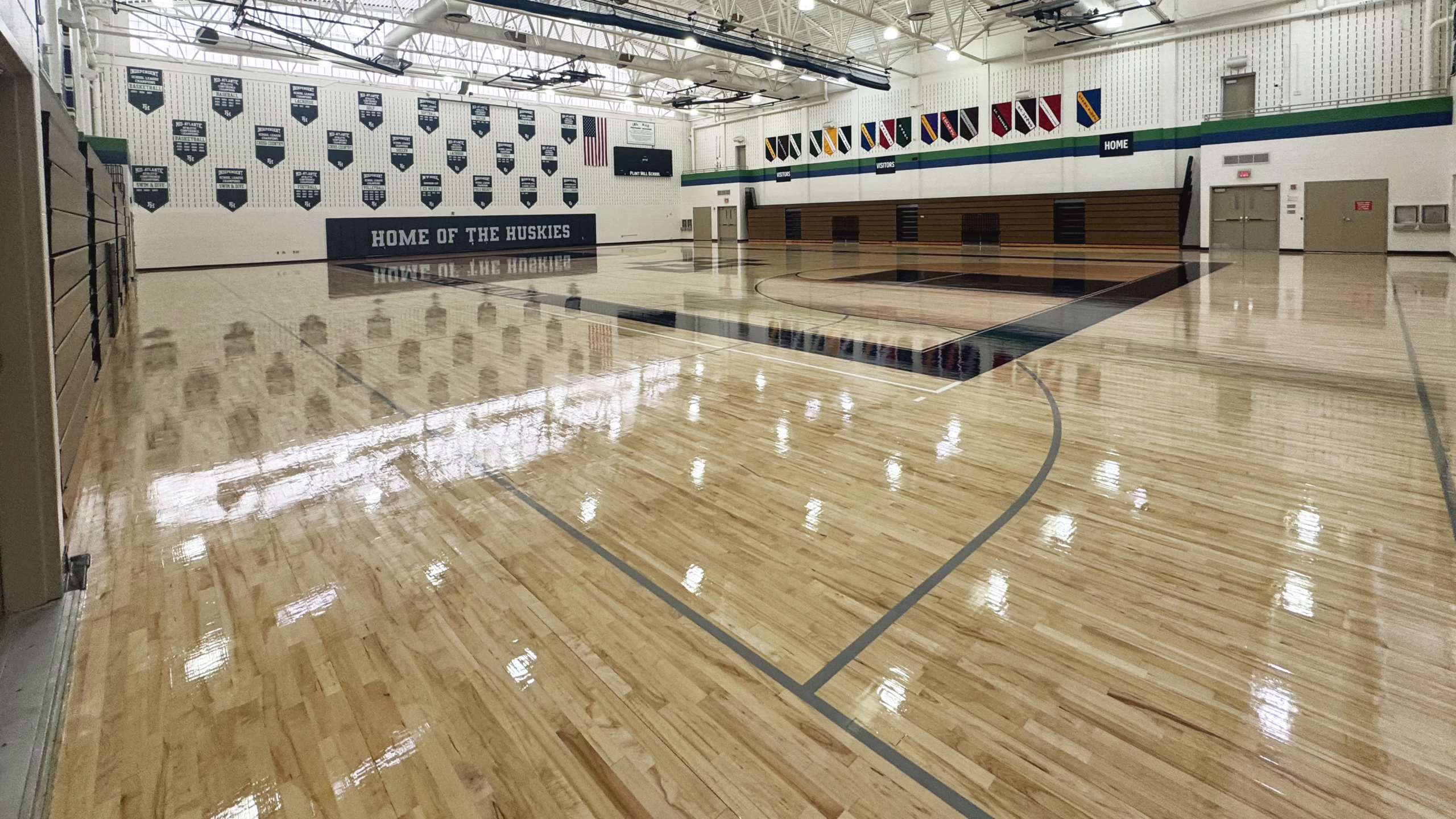 Keystone Sports Construction recently completed renovations to the hardwood gymnasium floors for Flint Hill School, located in Oakton, Virginia. Flint Hill is an independent school with an active athletic department offering a wide range of team sports and varsity programs. The project started by taping off all existing volleyball plates. Next steps included screening the existing floor surface, followed by applying two coats of MFMA-certified polyurethane.