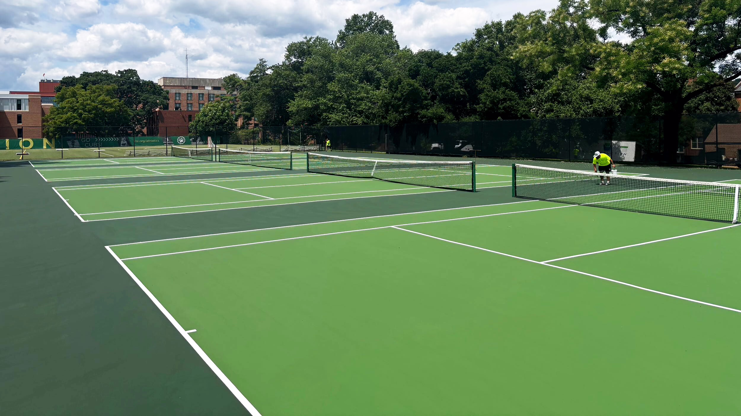 Keystone Sports Construction recently completed the renovations of the tennis courts for Georgetown Visitation Preparatory School in Washington, D.C. Georgetown Visitation is an all-girls, Catholic high school in DC, educating women of faith, vision, and purpose in the Salesian tradition since 1799. The project included repairing minor surface cracking with Riteway crack repair material, resurfacing, and installing new acrylic surface coatings to the courts. Afterward, tennis line striping was provided for the courts. Design elements included a side court logo along one of the boundary lines.