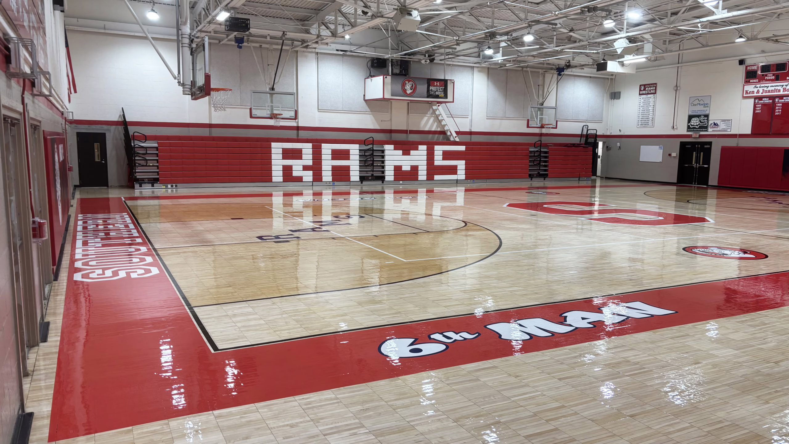 Keystone Sports Construction recently completed renovations to the main gymnasium hardwood floors for Southern Garrett High. School Southern Garrett High School is a public high school in Oakland, Maryland, United States, with approximately 700 students. The project started by taping off all existing volleyball plates. Next steps included screening the existing floor surface, followed by applying two coats of MFMA-certified polyurethane.