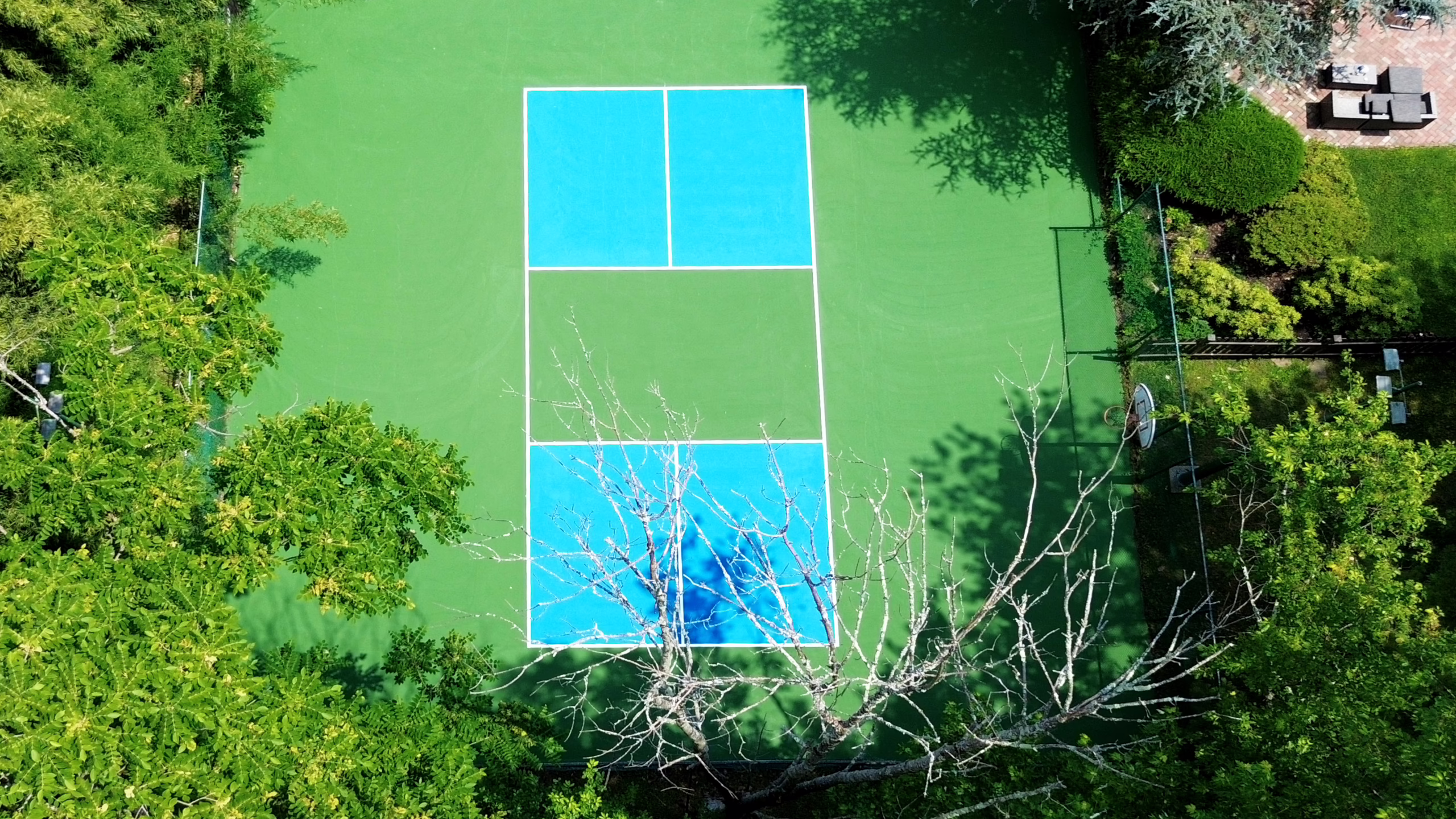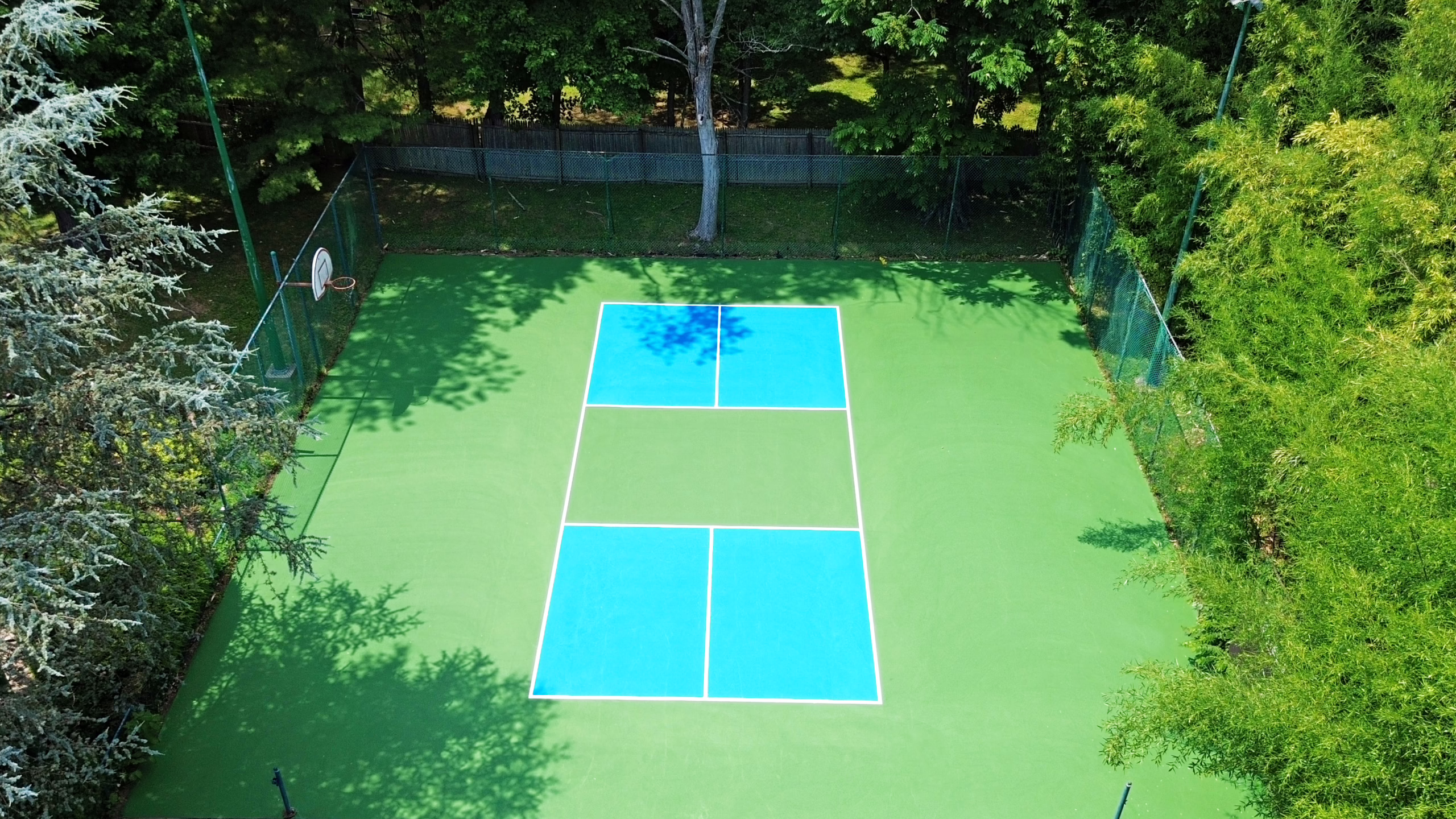 Keystone Sports Construction recently completed renovations to the pickleball court for a personal residence in Wynnewood, PA. Wynnewood is a suburban unincorporated community located west of Philadelphia. The project included resurfacing and installing a new acrylic surface coating. Afterward, pickleball line striping was provided for the court, and portable netting systems were provided.